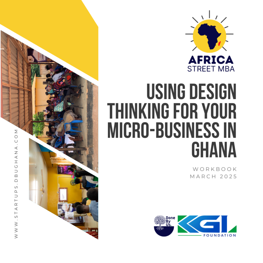 This workbook is provided for informational and educational purposes only, as a guide to applying Design Thinking principles to micro-business development in Ghana. Success in business requires commitment, market knowledge, and adaptation beyond the concepts presented herein. The authors and organisations involved, including DONE BY US and KGL Foundation, assume no responsibility for any decisions made or results obtained based on the use of this material.